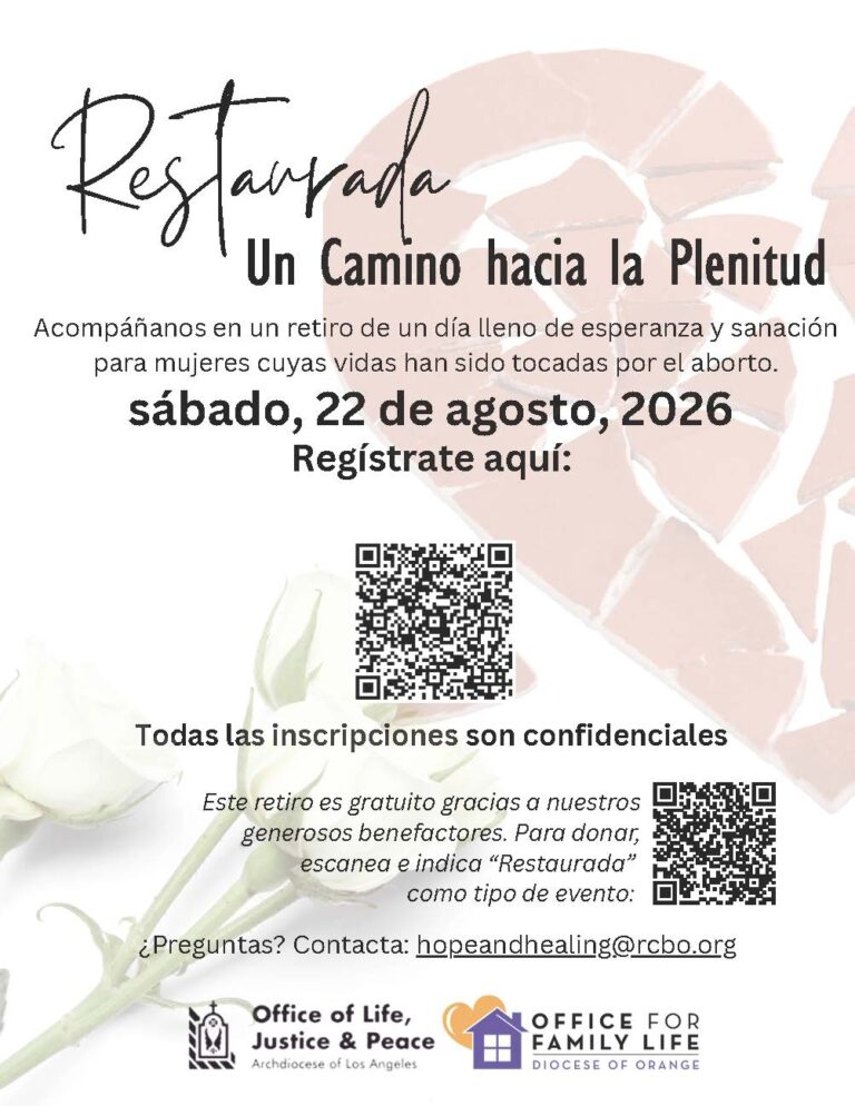 If you reside outside of the Southern California area, please visit the national Project Rachel Ministry website for the Diocesan contact for post-abortion healing ministry in your area. If you reside outside of the United States, please reach out to your local Diocese.